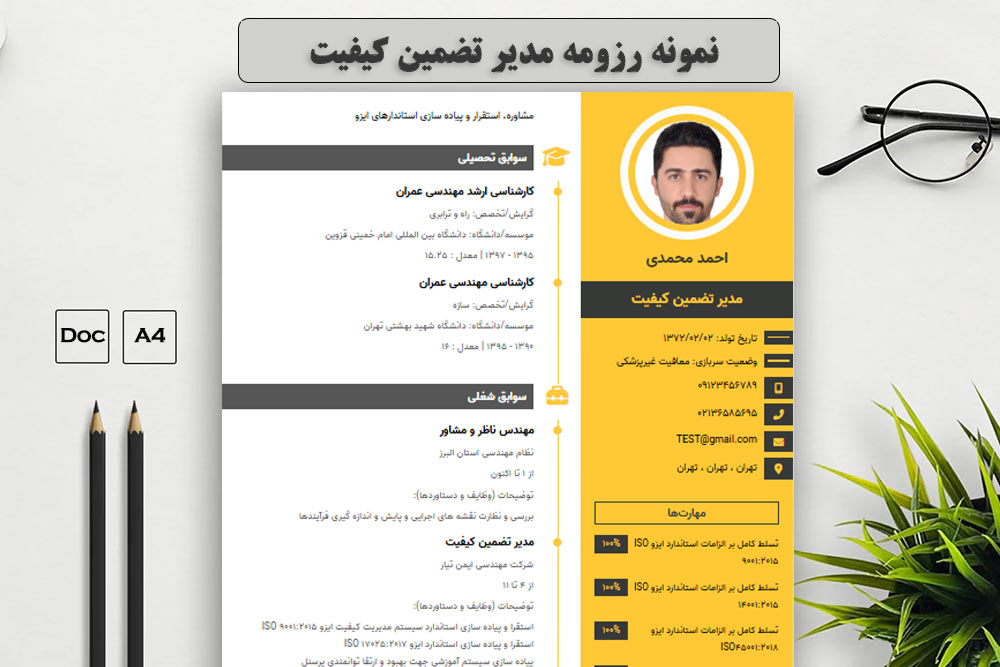 یک رزومه کاملا حرفه ای و استاندارد در زمانی که انتخاب کرده بودم برای من ارسال شد که توانست به بهترین شکل معرف من باشه. از رزومیتو ممنونم.
