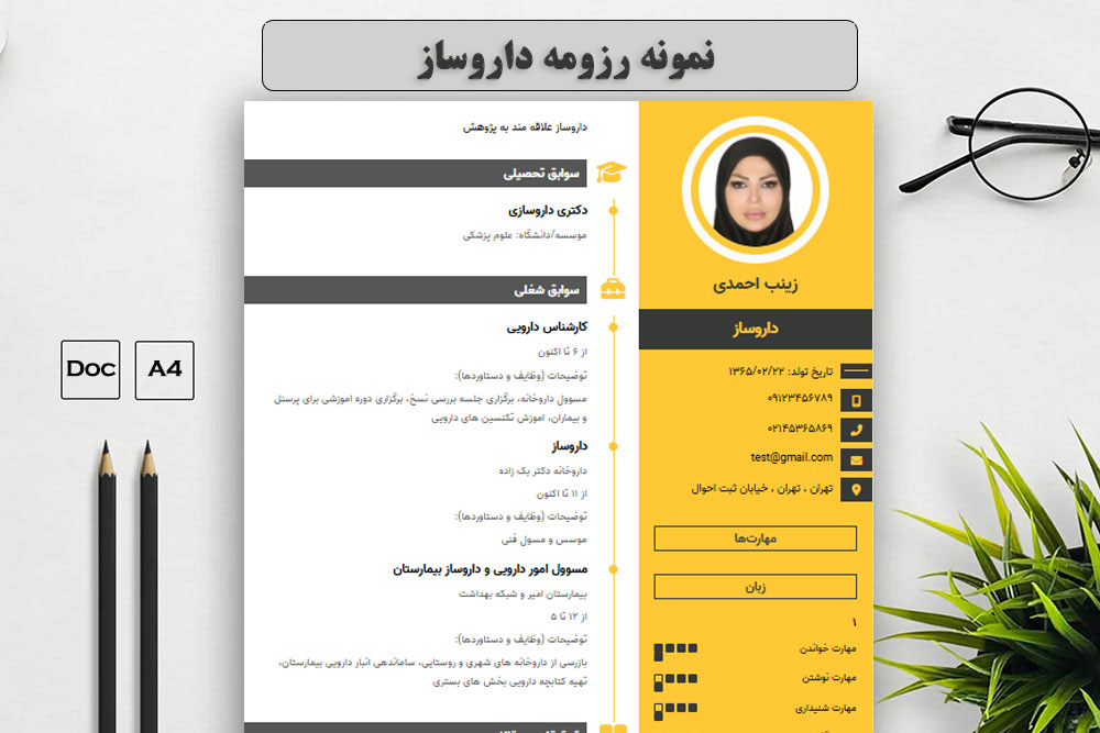 در این بخش از سایت {رزومه ساز رزومیتو} به بررسی نحوه نوشتن رزومه عنوان شغلی داروساز میپردازیم.