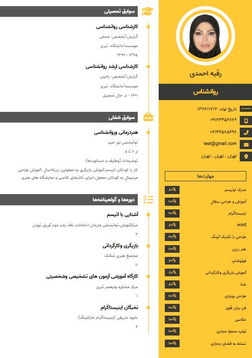 بخش «اطلاعات تماس در رزومه روانشناس»