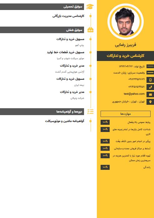 بخش قالب رزومه کارشناس خرید و تدارکات