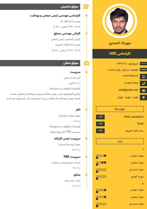 بخش «اطلاعات تماس در رزومه کارشناس HSE»