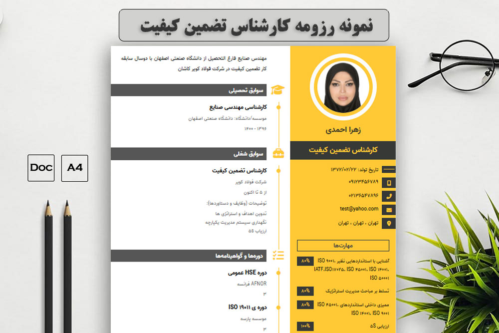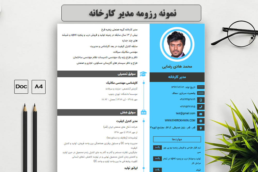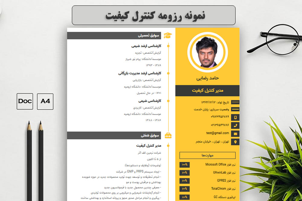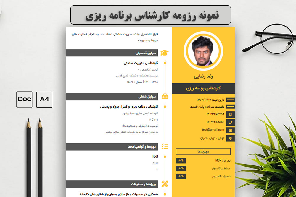 یک رزومه کاملا حرفه ای و استاندارد در زمانی که انتخاب کرده بودم برای من ارسال شد که توانست به بهترین شکل معرف من باشه. از رزومیتو ممنونم.