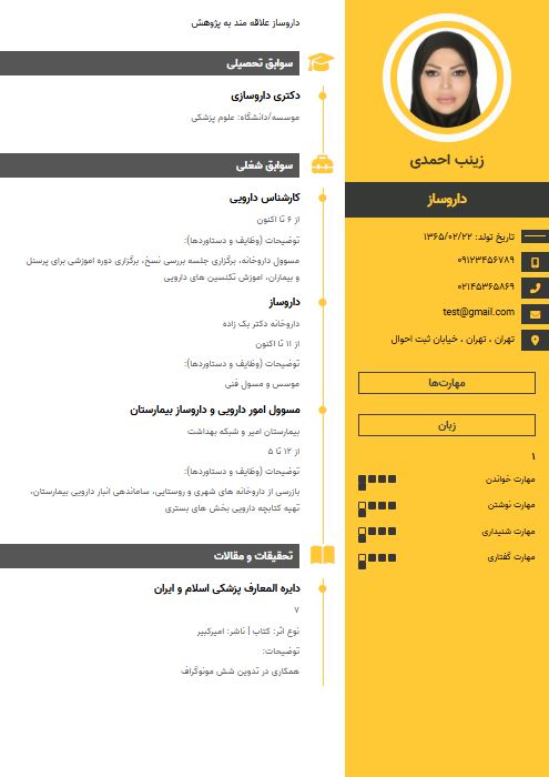 در این بخش از سایت {رزومه ساز رزومیتو} به بررسی نحوه نوشتن رزومه عنوان شغلی داروساز میپردازیم.