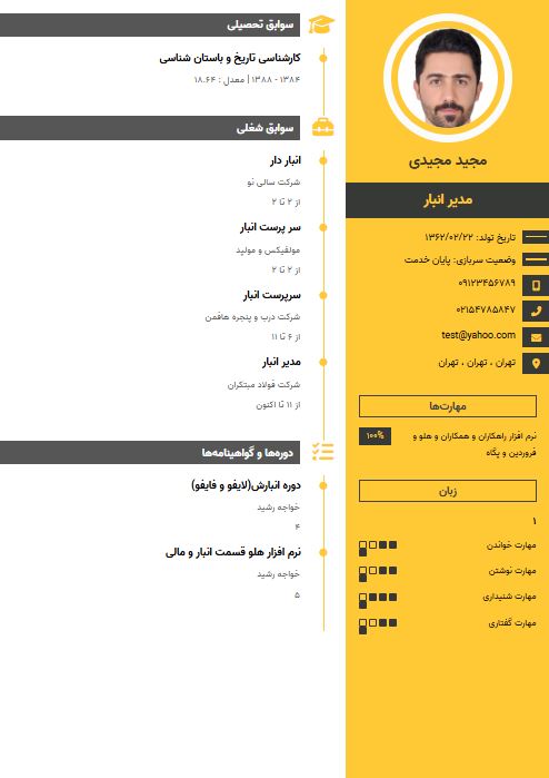 در این بخش از سایت {رزومه ساز رزومیتو} به بررسی نحوه نوشتن رزومه عنوان شغلی مدیر انبار میپردازیم.