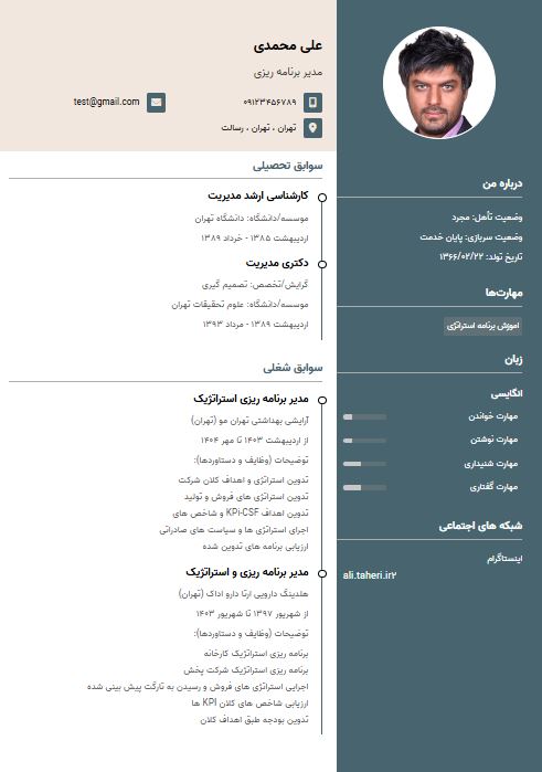 رزومه مدیر برنامهریزی سندی حرفهای است که مهارتها، تجربیات و دستاوردهای شما را در زمینه برنامهریزی استراتژیک و مدیریت پروژهها به نمایش میگذارد. هدف اصلی این رزومه، نشان دادن توانایی شما در تدوین برنامههای دقیق، مدیریت منابع و اطمینان از تحقق اهداف سازمانی در زمانبندی مشخص است تا کارفرمایان را متقاعد کند که شما میتوانید عملکرد سازمان را بهبود دهید. این سند باید دقت، تحلیلگری و مهارتهای مدیریتی شما را برجسته کند.
