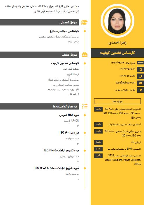 بخش قالب رزومه کارشناس تضمین کیفیت